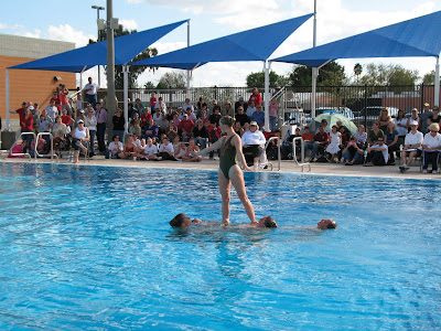 Wednesday: I went to a synchro meet of some of the younger girls in my ward. Ridiculously hot, but the meet did bring some good memories back of what my life used to be like and when I actually enjoyed the sport. It was a little more intense, perhaps, but still. Me and my friends went to Taco Bell and then me and Rachelle went swimming at like 9 PM. Good times. For those of you that don't know what synchro is or don't remember, that's what the picture is for.